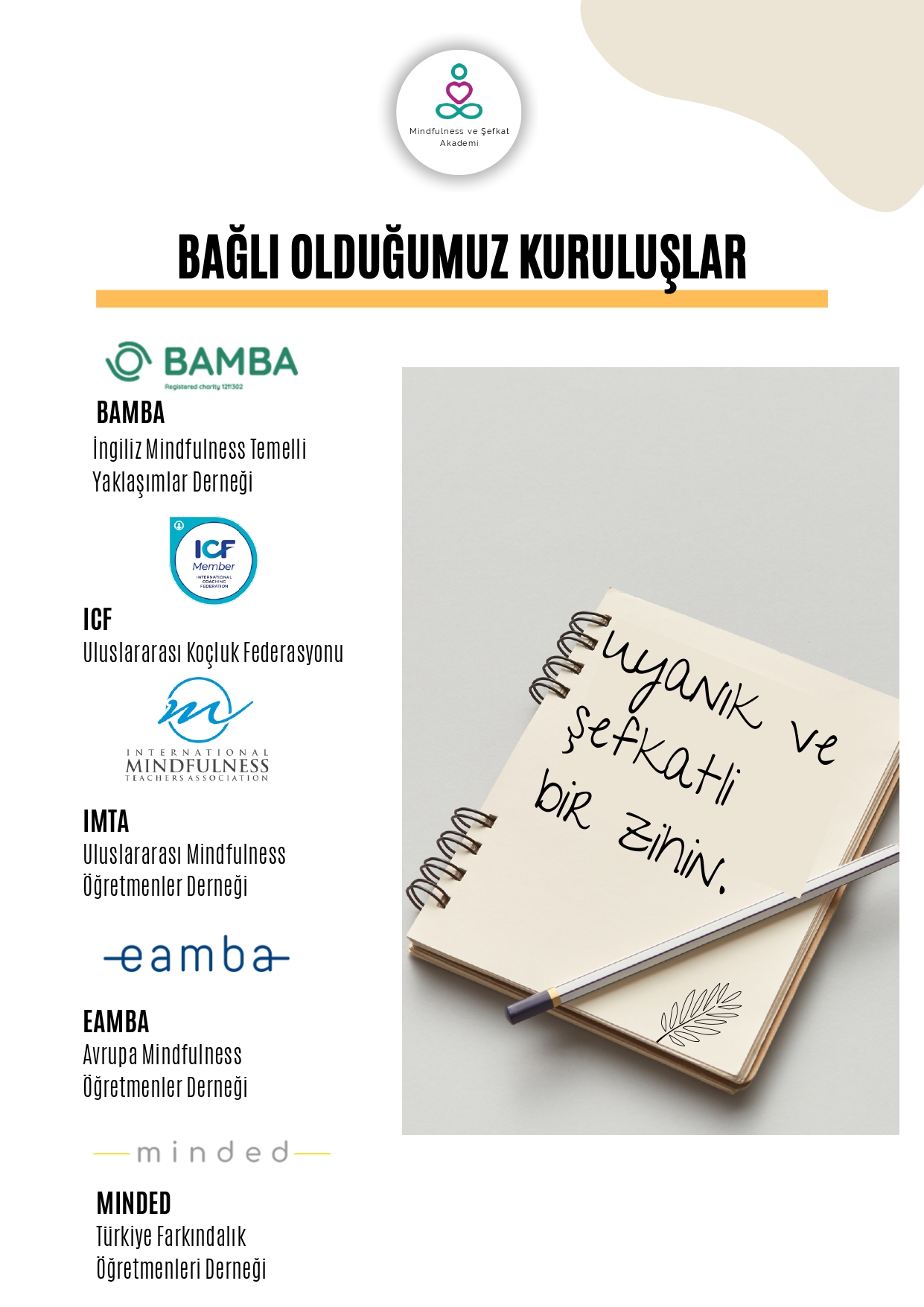Doğru niyet, doğru çaba ve doğru eylemle, Mindfulness ve Şefkat Akademi olarak, toplumumuza eşitlikçi, erişilebilir ve dönüştürücü bir şekilde farkındalık ve şefkat yaymaya devam ediyoruz.